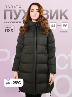 Пуховик зимний длинный с капюшоном полупальто на пуху