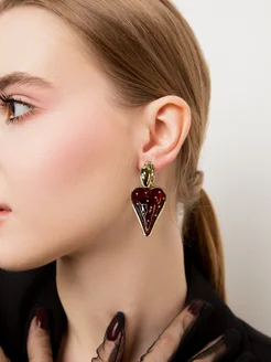 Серьги сердечки клубника бижутерия с камнями гвоздики