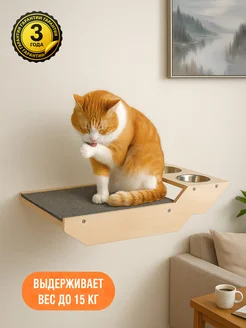 Полка лежанка для кошек с отверстиями для мисок настенная