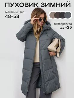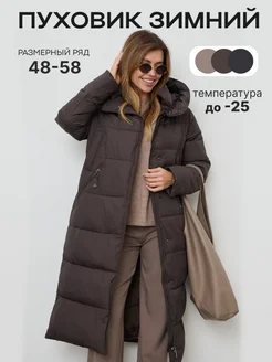 Пуховик зимний длинный с капюшоном