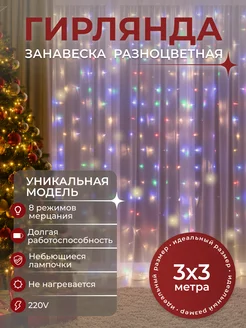 Разноцветная гирлянда 3х3 для праздника и декора с пультом