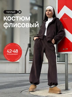 Костюм спортивный на молнии теплый флис оверсайз