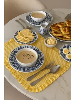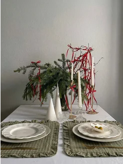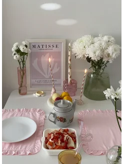 Сервировочные салфетки с рюшами на стол тканевые набор 2 шт