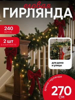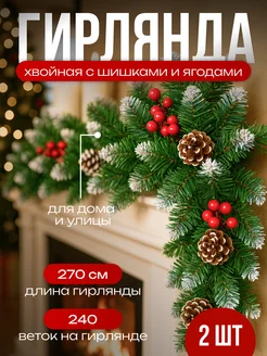 Новогодняя еловая гирлянда с шишками 270 см 2шт