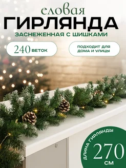 Новогодняя хвойная гирлянда заснеженная с шишками 270 см