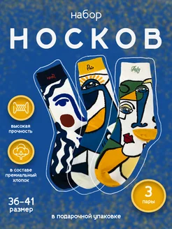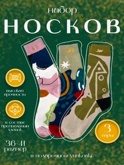 Носки длинные набор 3 пары, с ярким принтом высокие
