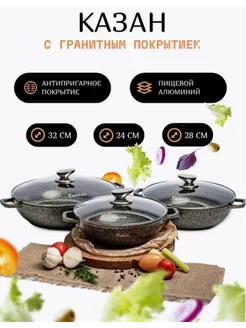 Казан с крышкой, 3,7л, Алюминий, 22 см