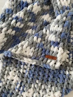 Плед вязаный Премиум 110*180 см синий серый белый, 1спальный