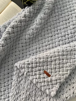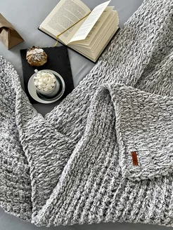 Плед вязаный Премиум 110*180 см белый меланж, 1спальный