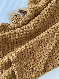 Плед вязаный Премиум 110*180 см светло-коричневый, 1спальный