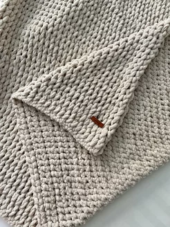 Плед вязаный Премиум 110*180 см бежевый, 1спальный