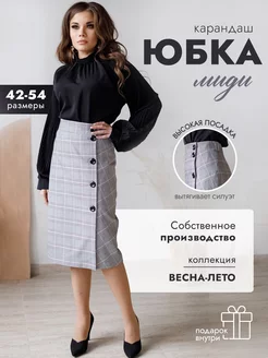 Юбка карандаш миди длинная в клетку