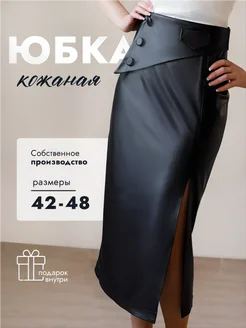 Кожаная макси юбка с разрезом