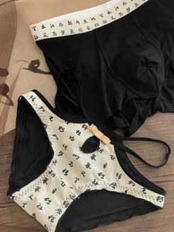 Трусы парные для влюбленных набор хлопок в рубчик красивые