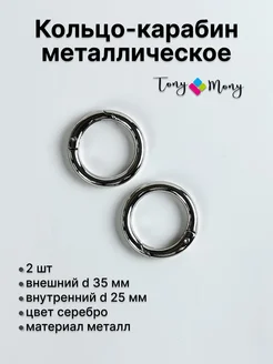 Кольцо-карабин металлический d 35 мм 2 шт серебро