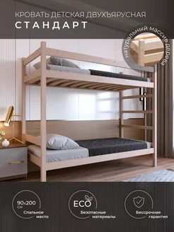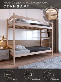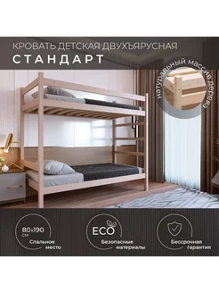Кровать двухъярусная деревянная СТАНДАРТ 80x190