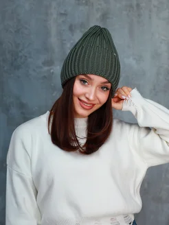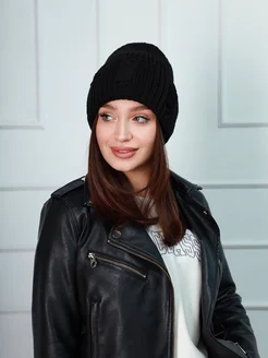 Шапка бини зимняя вязаная лопата с отворотом утепленная