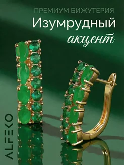 Серьги бижутерия золотистые с зелёными камнями