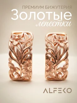 Серьги бижутерия золотистые с цветочным узором