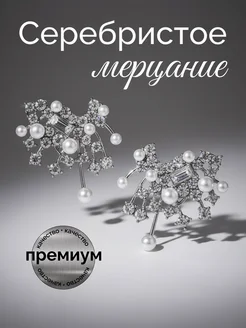 Серьги гвоздики удлиненные с камнями и жемчугом