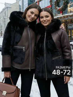 Дубленка зимняя двусторонняя короткая с капюшоном оверсайз