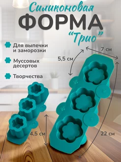 Силиконовая форма тройная Цветы для гипса и подсвечника