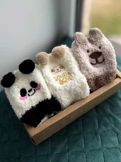 Теплые махровые носки с милым принтом в подарочной упаковке