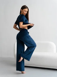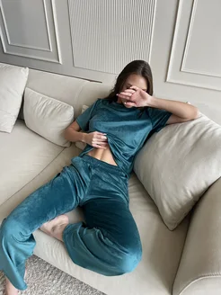 Пижама домашняя велюровая со штанами и футболкой