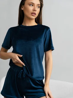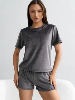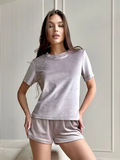 Пижама домашняя велюровая с шортами и футболкой