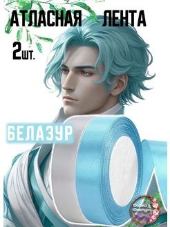 Набор Атласных Лент "БЕЛАЗУР" 2шт-Голубая 2см и Белая 2см