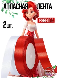 Набор Атласных Лент "РУБЕЛЛА" 2шт-Красная 2см и Белая 2см
