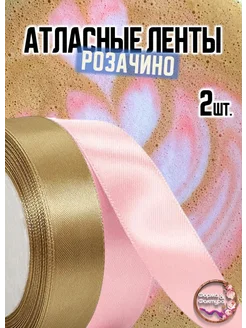 Атласные Ленты "РОЗАЧИНО" 2шт-Розовая 2см и Капучино 2см