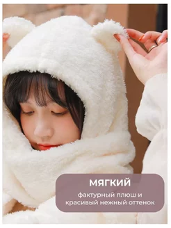 Шапка шарф мишка с ушками зимняя и варежками 3в1