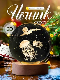 Ночник медуза стеклянный шар подарок от Тайного Санты