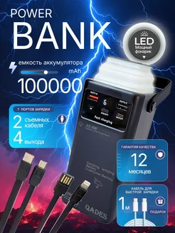 Повербанк 100000mah с быстрой зарядкой, фонариком