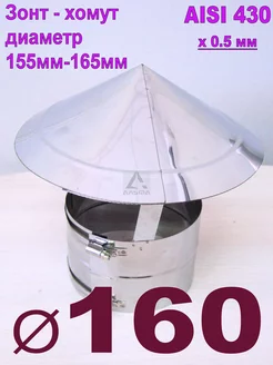 Зонт на дымоход c хомутом AISI430 x0,5мм D160 (155-165)