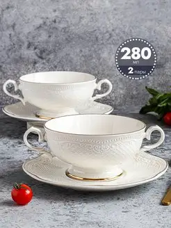 Бульонницы с блюдцами, супницы, набор 2 шт, 280 мл