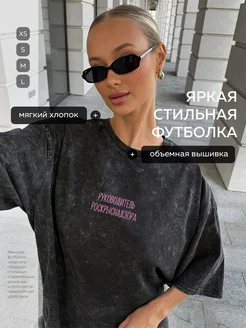 Футболка с надписью свободная модная с надписью вышивкой