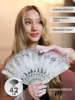 Веер складной кружевной с перьями