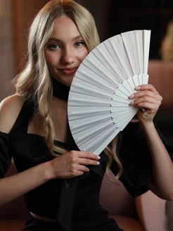 Веер тканевый полупрозрачный белый