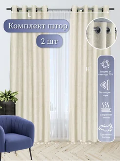 Шторы рогожка на люверсах Молочный 440*260см