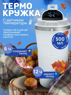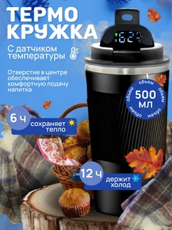 Термокружка автомобильная для кофе и чая 500 мл с датчиком