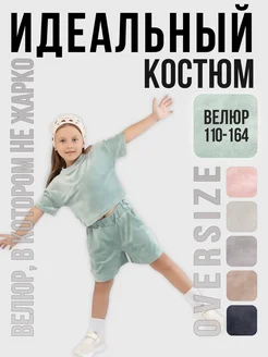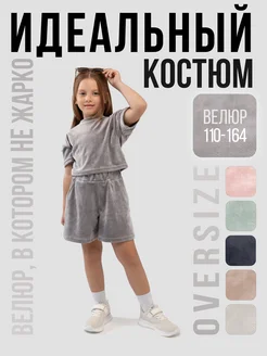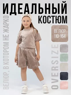 Костюм для девочки велюровый с шортами бежевый коричневый