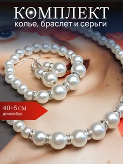 Комплект бусы и браслет из белого жемчуга