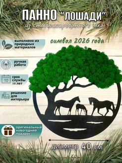 Панно декоративное из мха Лошади 40 см