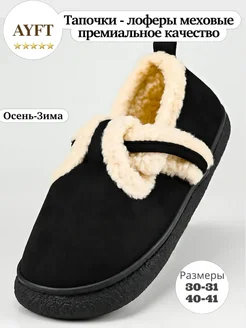 Тапочки-лоферы короткие угги закрытые теплые с мехом