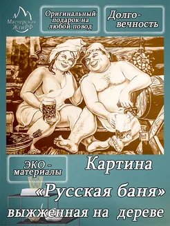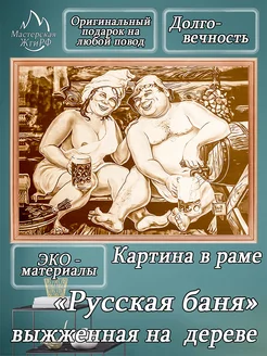Картина выжженная на дереве в раме Русская баня 40х60см