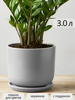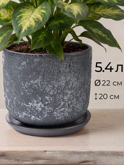 Керамический горшок для цветов 5 л с поддоном, серый