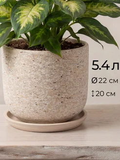 Керамический горшок для цветов 5 л с поддоном, бежевый