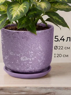 Керамический горшок для цветов 5 л с поддоном, фиолетовый